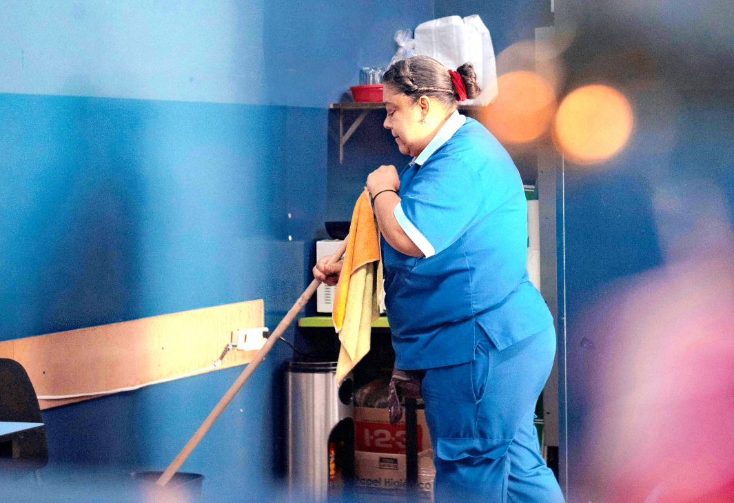 Sie arbeitet schon seit Stunden in den Korridoren und Zimmern des Gebäudes, schrubbt Böden, wischt Toiletten und leert Mülleimer. Ein normaler Job? Nein! Denn Sorinas* Lohn liegt weit unter Mindestlohn, sie hat keine rechtsgültigen Arbeitszeiten und keinerlei Absicherung. Sie ist Opfer moderner Sklaverei und eines Systems, das man eventuell in der „dritten Welt“, keinesfalls aber in Deutschland vermuten würde.