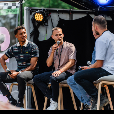 An Schulen zeigen die Profisportler jungen Menschen, wie sie sinnvoll mit Leistungsdruck umgehen können und dass ihr Wert nicht von ihrer Leistung abhängt.